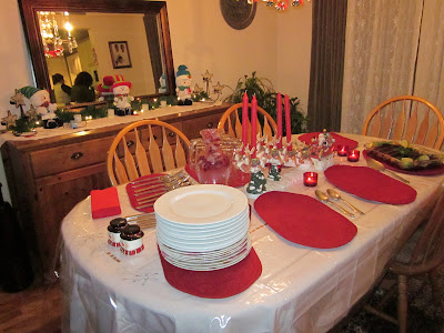 This month we met at Mitra and Esmaeil's home. Mitra always puts on those extra special touches that make everything look so pretty. I don't have her gift. When it's my turn to host, I'm lucky if my house is clean! Just look at all the beautiful Christmas touches Mitra added to her dining room.