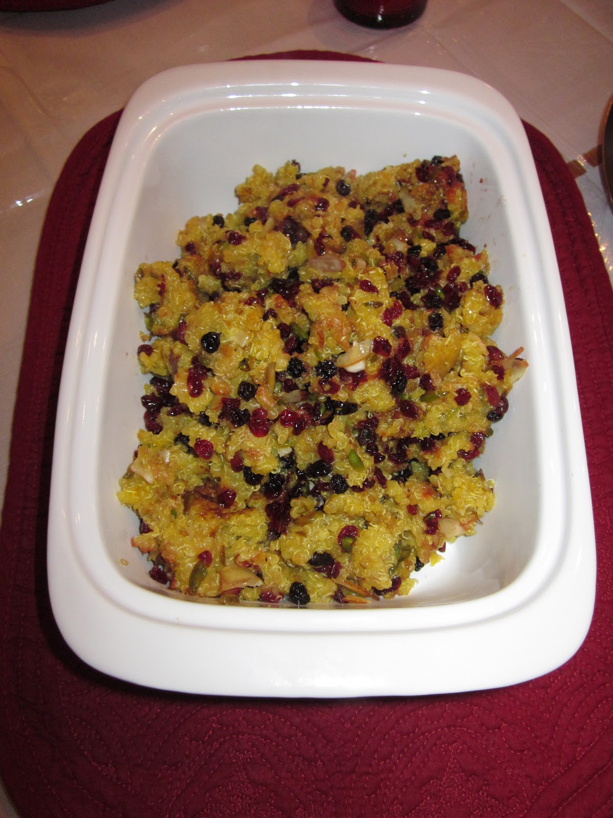 Mitra also experimented with quinoa--she added raisins, currants, and spices to give this dish a wonderful flavor. If you haven't already guessed by now, Mitra is a gourmet cook! She's been trying to teach me how to cook some of her culinary delights, but I'm a slow learner.